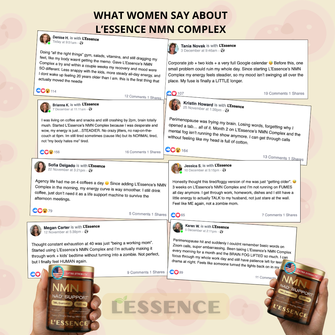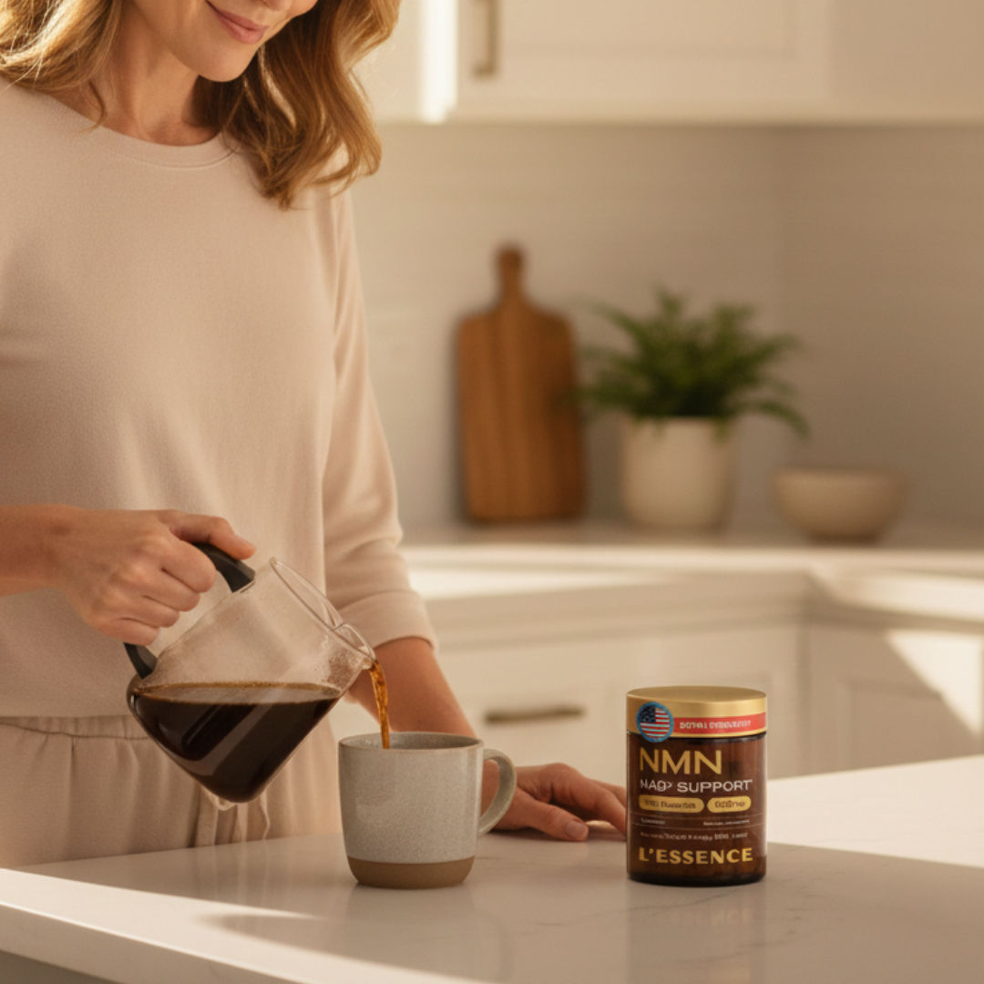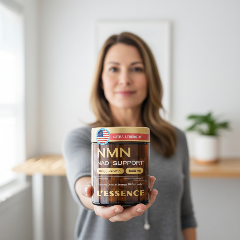Our 4-in-1 NMN Complex™ NAD+ Support Capsules combine targeted ingredients and research-backed dosing to support cellular energy, mental clarity, and healthy aging. Powered by NMN, resveratrol, quercetin, and TMG, each daily serving helps refill and protect NAD+ so you can feel steadier energy, sharper focus, and more like yourself again.